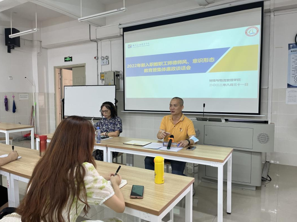 新闻网消息(文、图/财经与物流管理学院 韦献妮)为贯彻落实习近平总书记关于教师队伍建设的系列重要指示批示精神,全面加强教师队伍建设,增强教师的职业道德素养。8月31日,财经与物流管理学院在官塘校区T1-D301教室,开展2022年新入职教职工师德师风、意识形态教育暨“廉洁从教”集体谈话会。学院院长冯雪萍、学院党总支书记周继春以及2022年新入职教职工参加会议。