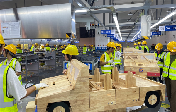 其中,竞赛单元《精益生产全景工厂实训》由我院承接,该竞赛单元主要考核一线班组长综合技能水平和现场管理能力。以财经与物流管理学院现代物流教学团队负责人磨虹任为首的课程团队,在接到该任务后,根据主办方竞赛要求,以精益生产五大目标“安全、质量、响应、成本、效率”为指导,设计和制定实训内容;同时,因此次竞赛选手都是柳州市大型工业企业班组长,课程团队从选手现状出发,就竞赛评分标准也进行了相应的调整。竞赛过程中,参赛者从理论上了解工厂构成及运行流程,接受岗位标准化操作、岗位6S、自主保全等培训后,进行上线实训,按生产计划装配和拆装木模车,让参赛者充分体验和认识精益生产的价值,加强了一线班组长技能培训及考核力度。这也是此赛事首次将《精益生产全景工厂实训》内容纳入竞赛环节,成为本次赛事的一大亮点与特色,同时,通过这次竞赛的承接,也进一步提升了课程团队的培训能力。