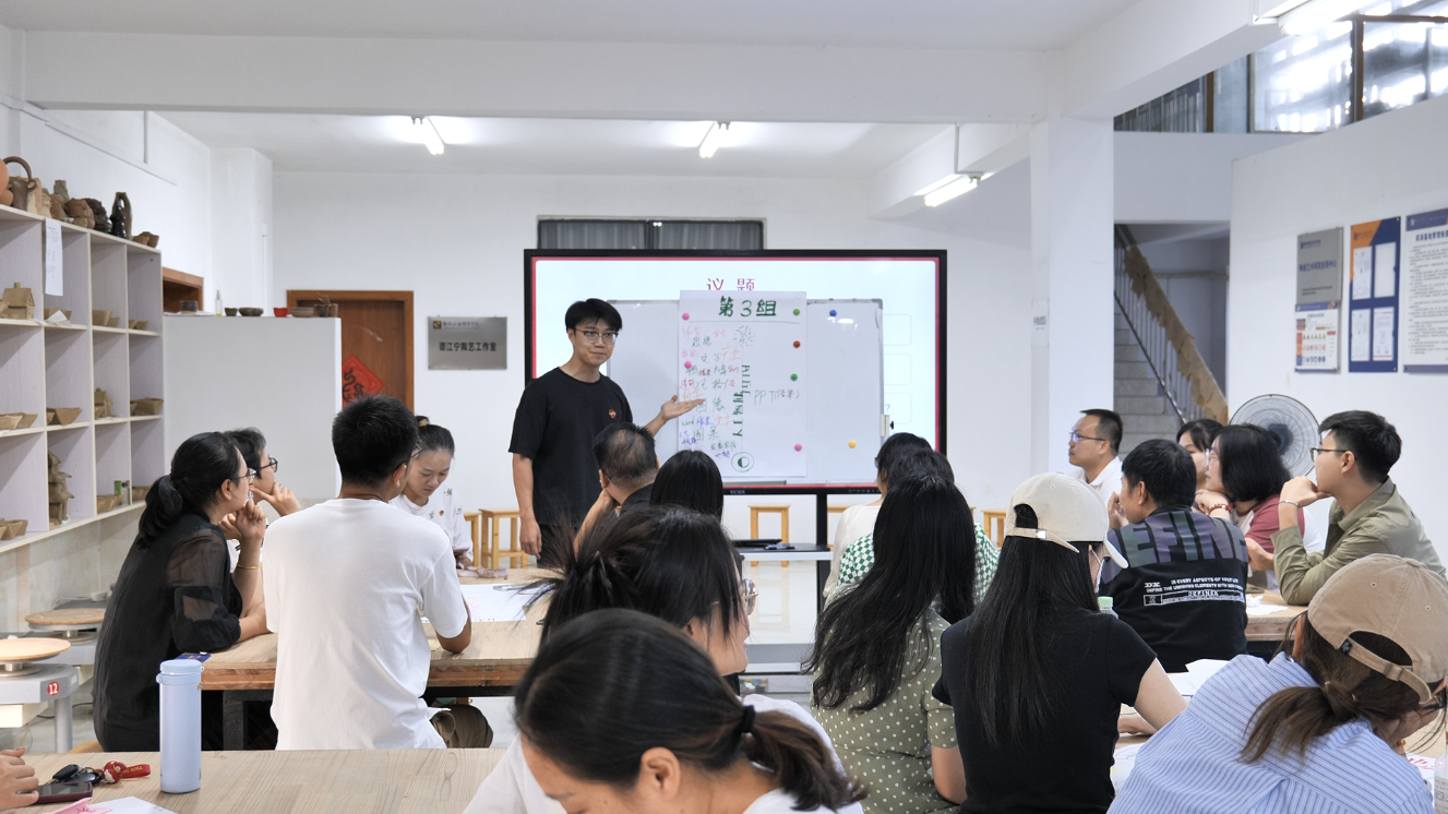 新闻网消息(文/艺术学院 杜昕 图/艺术学院 杜昕 廖晓强)2024年11月15日,艺术学院党总支部在天工楼陶瓷艺术研发应用中心,开展学院教工党支部和学生党支部共建主题党日活动,主题为“职教本科赛道,艺术学院如何走好创新发展之路”。此次党日活动在形式上进行了创新,旨在通过集思广益,分小组进行头脑风暴,探讨艺术学院在职教本科下如何结合党的教育方针和艺术教育特色,实现创新发展。活动由艺术学院党建组织员杜昕主持,艺术学院各支部全体教师党员及入党积极分子共同参与活动。