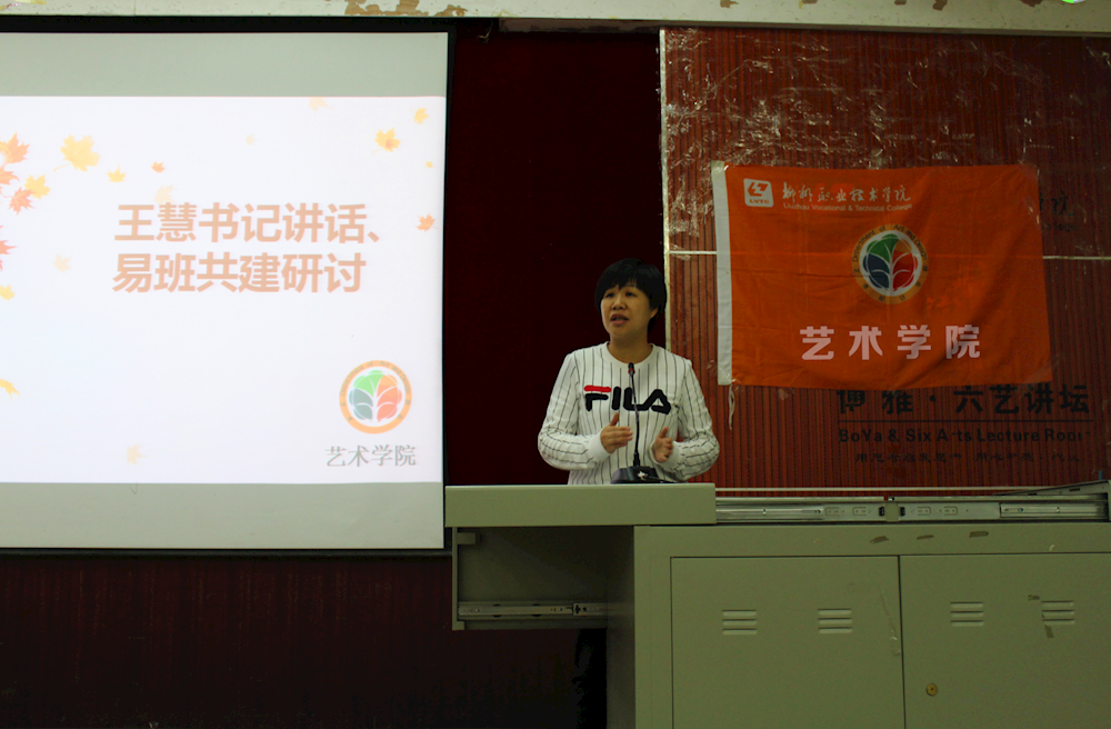 该活动的下半部分是由王慧书记带领着各个易班长进行易班共建研讨活动。王书记指出,易班是在校大学生展示思想动态的一个全新平台,希望各个班级能妥善利用,成立易班小组共同推动易班的发展,并强调了在使用易班平台过程中要共同遵守网络文明公约。