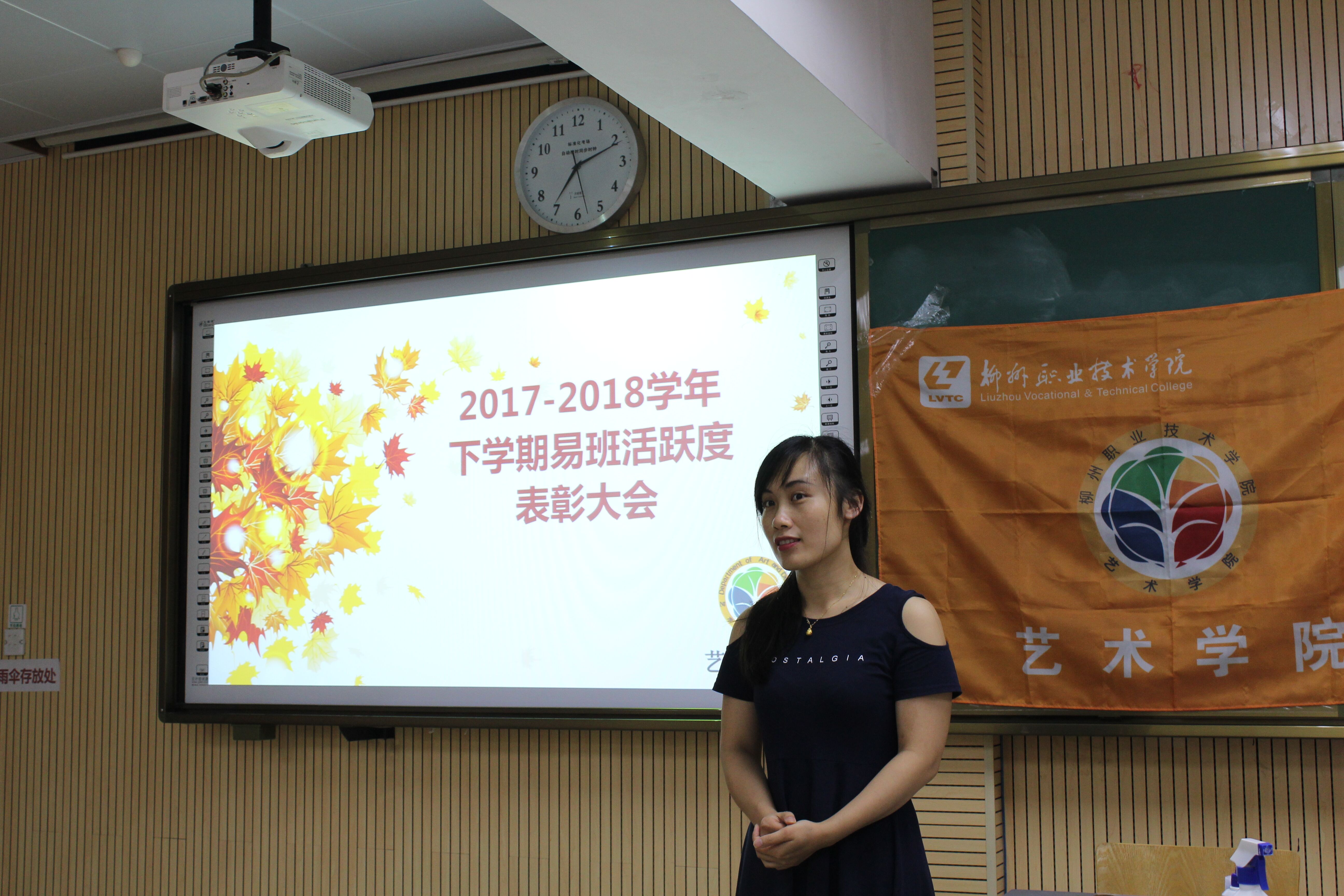 新闻网消息(文/艺术学院 尹春燕 图/艺术学院 陆佳俊)2018年6月24日晚,为了进一步推动学院易班建设工作,实现易班网络思政教育、成风育人的重要功能,艺术学院特举办了“2017-2018学年下学期易班工作表彰大会”。该院分团委书记覃晓晨老师以及全体易班班长出席。
