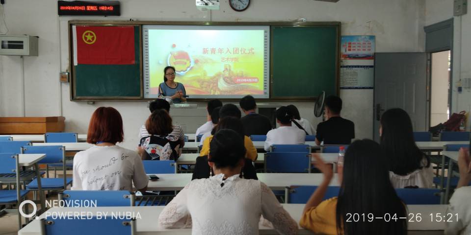 新闻网消息(文/艺术学院 赵令群 罗圆丽 图/艺术学院 叶保峰)加强共青团的组织队伍建设,进一步加强对入团积极分子的培养、教育和考察,帮助入团积极分子深入学习团的理论知识和团的职,加深同学们对共青团的了解,强化团员的责任意识和使命意识,2019年4月26日下午,艺术学院分团委在博闻楼103教室开展团课培训活动,其培训对象是今年发展的入团积极分子、各班团支书、组织部成员。此次团课的主讲老师是艺术学院分团委书记赵令群老师。