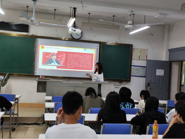 活动开始,团支书王婧烨从“深入学习贯彻习近平新时代中国特色社会主义思想”“‘十个明确’:习近平新时代中国特色社会主义思想的核心内容的进一步概括”“全面学习、全面把握、全面落实党的二十大精神”“深刻认识党的二十大的重大意义”等四个方面具体的向同学们进行讲解。随后,同学们进行分享,交流学习心得,更深入理解伟大建党精神。同学们精彩的发言深刻地体现出了对党的二十大精神的深度学习和理解,并结合青年与时代的关系提出了自我完善,自我革命的要求,深深鼓舞了在场的每一位成员。