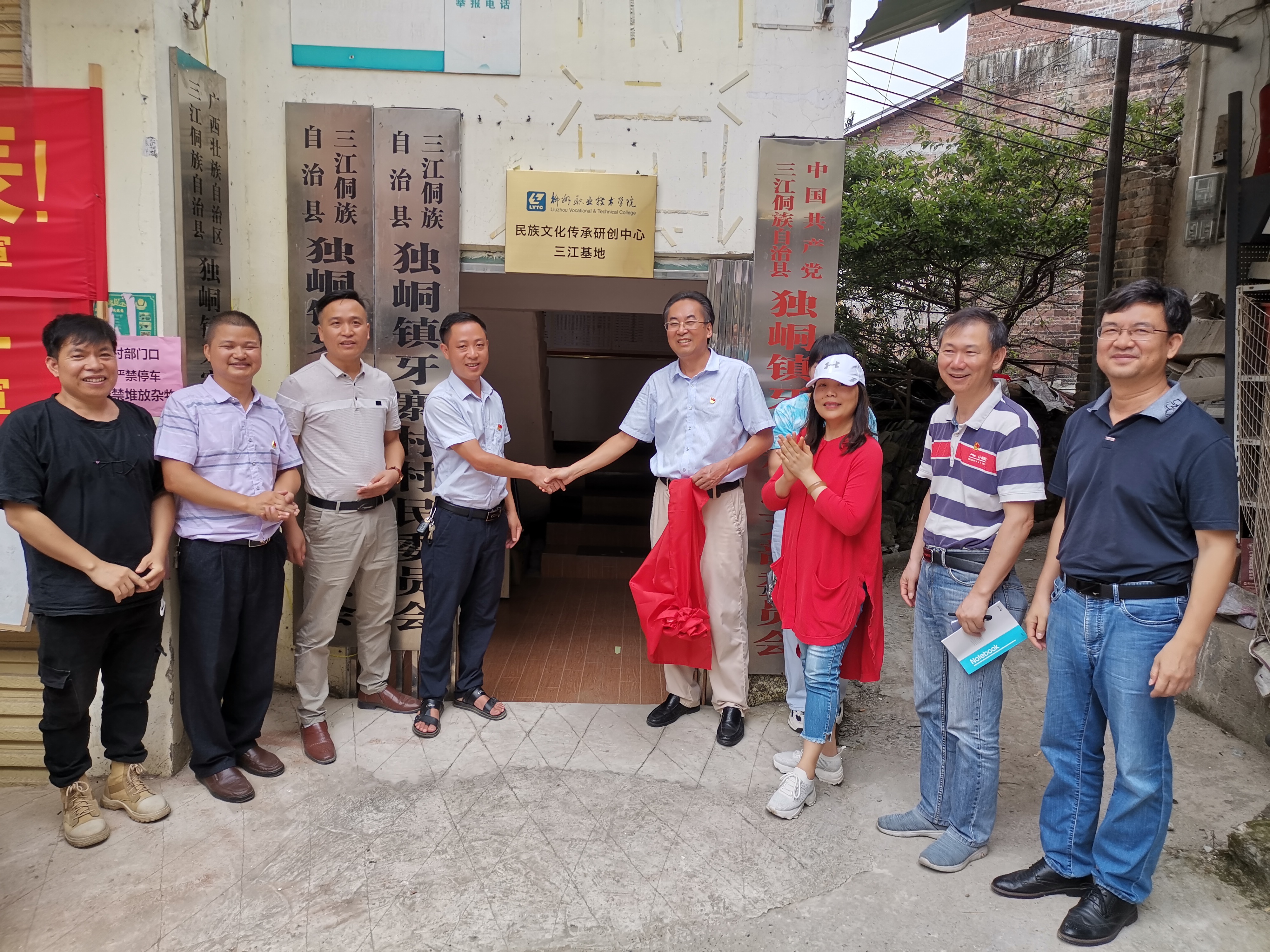 三江基地共设有两个点,分别是位于三江县城区的清花绣坊(三江县清花锦绣文化传承有限公司)和独峒镇牙寨村。6月24日上午,我校民族文化传承研创中心三江基地牙寨点揭牌仪式在独峒镇牙寨村党群服务中心举行,校党委副书记阳旭出席活动并为基地揭牌。在清花绣坊基地点的揭牌活动,我校艺术学院副院长陆进出席并为基地揭牌。