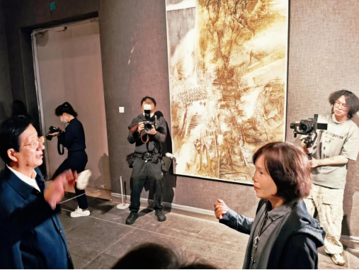 国家文化和旅游部副部长卢映川(右三)、山东省政协副主席孙继业(右二)出席作品展