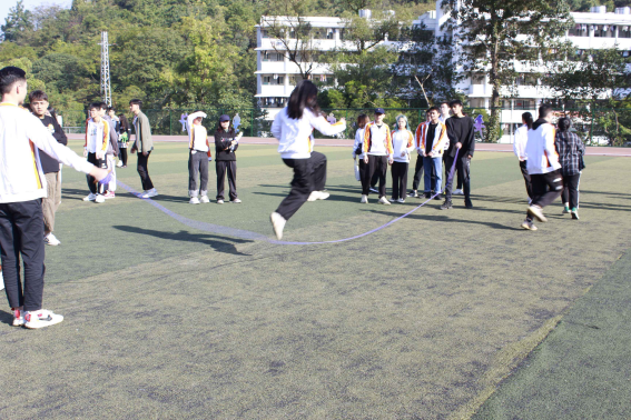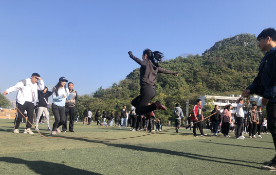 本届运动会共设置了23个竞赛项目及3个趣味项目,其中分为教工项目和学生项目。教师项目为鱼贯跳绳和金龙钻圈,教师团队分成两个队伍形成竞争态势。教师们走出课堂、来到运动场,都成了生龙活虎的运动达人,灵动的身姿展现出艺术学院教师的阳光活力。场上同时也进行着学生的团体赛——鱼贯跳绳。团队协作的精神在各班20人组成的一个个动态“8”字中体现得淋漓尽致。