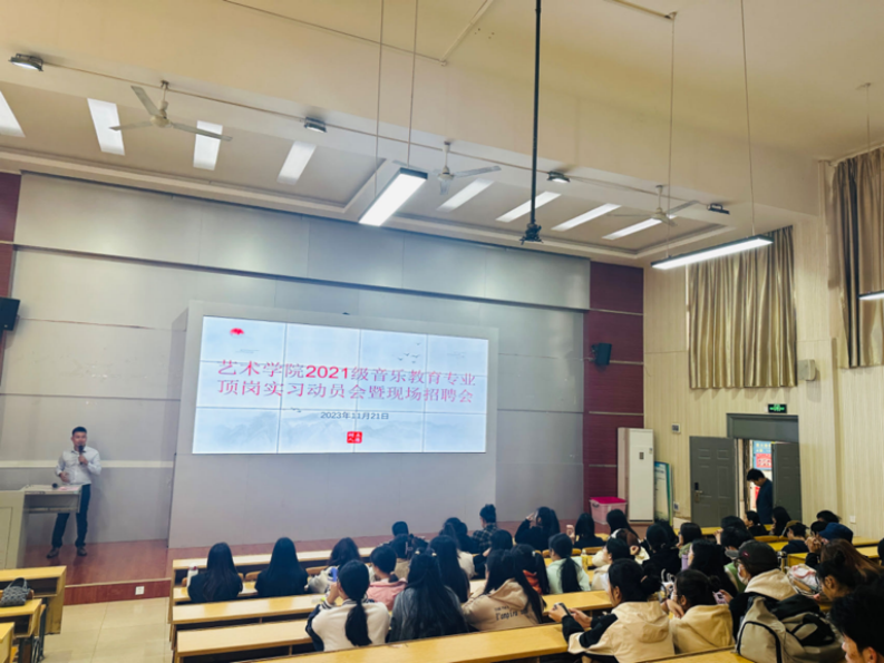 新闻网消息(文/艺术学院 张峻荣 图/艺术学院 曾少颐 朱学春)为更好推进2023届毕业生的实习和就业工作,2023年11月21日上午,艺术学院在社湾校区博闻楼110教室召开深圳市综合素养实践教育基地专场宣讲会。参加本次会议的有企业招聘人员、2021级音乐教育专业全体学生及音乐团队专业教师。