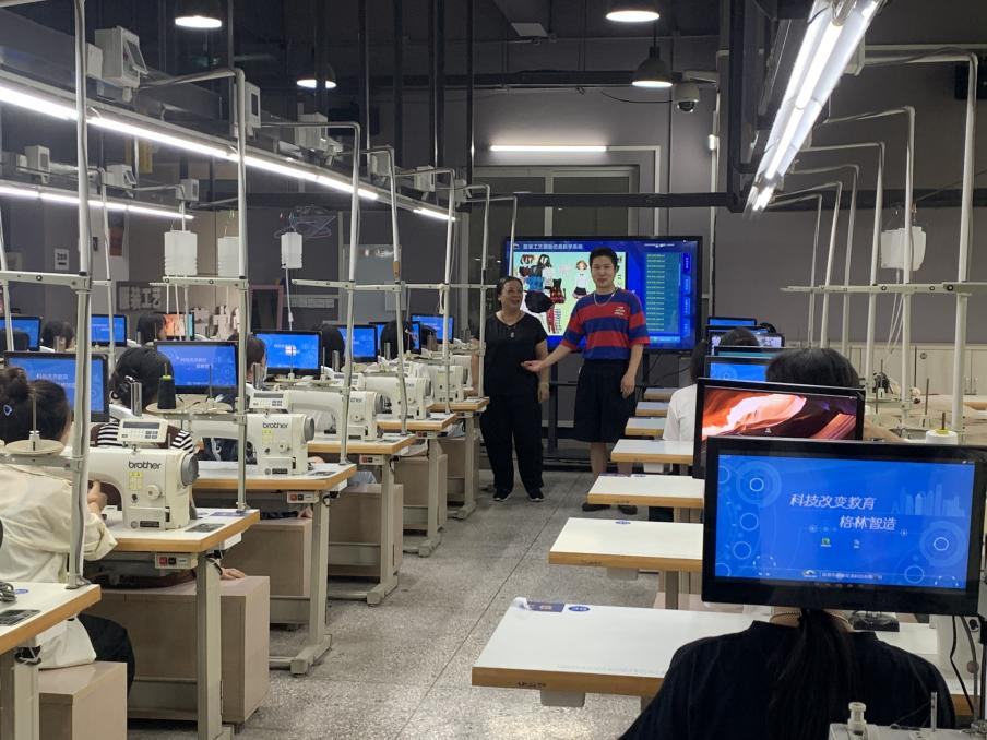黎红燕老师和黄博老师介绍纺织服装技术实训基地