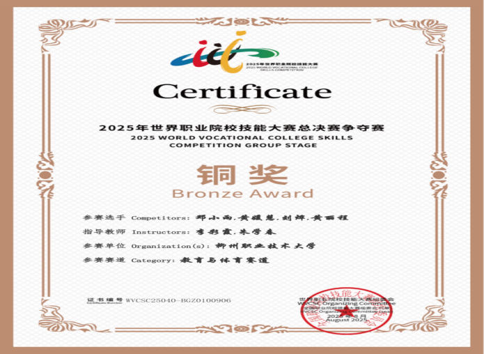 世界职业院校技能大赛决赛铜奖