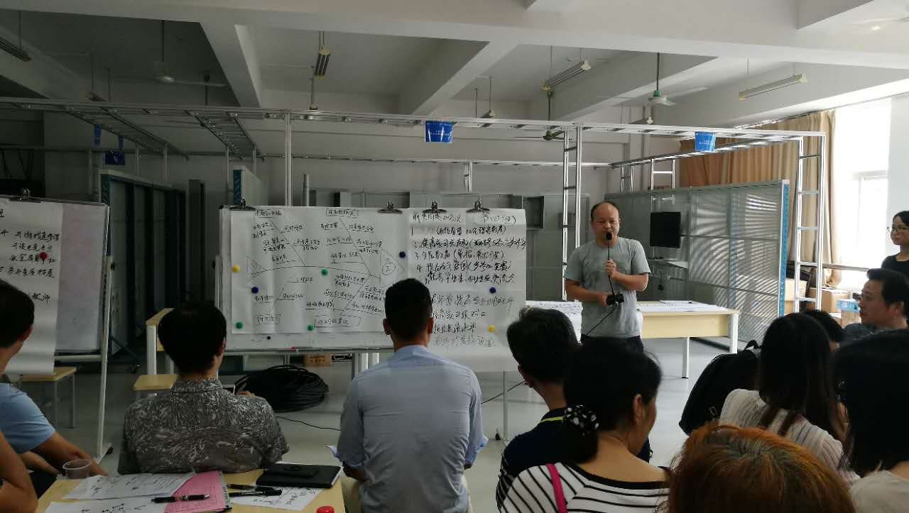 会议由学生专干龙思珍老师主持,采用管理大师石川馨发明的“鱼骨图分析法”,运用头脑风暴的方式,找出问题,逐条分析原因,探索出最优化的解决方式。由于方法新颖独特,参会者参与度高,得到了教师们的积极响应,全体教师分成5个小组,围绕本次会议主题,针对“为什么学习兴趣不高”、“什么情况下学习效果不好”等多个问题展开热烈讨论,各组代表依次上台介绍本组的解决方案,接受大家的提问。
