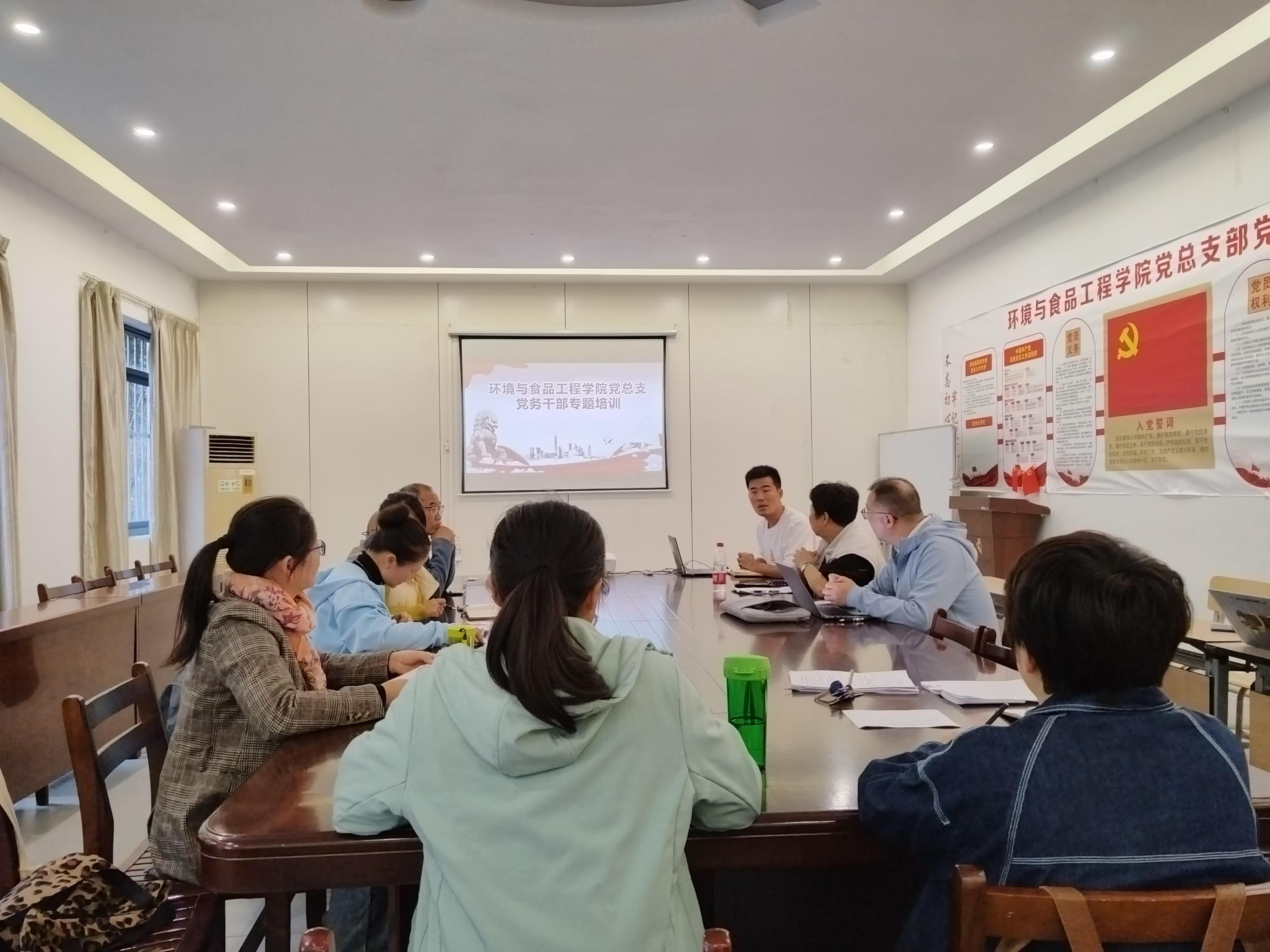 新闻网消息(文/环境与食品工程学院 周旭凯 图/环境与食品工程学院 黄姿梅)12月13日,环境与食品工程学院党总支在海纳楼一楼会议室开展党务干部培训,培训由组织员周旭凯主讲,全体党务干部参加。