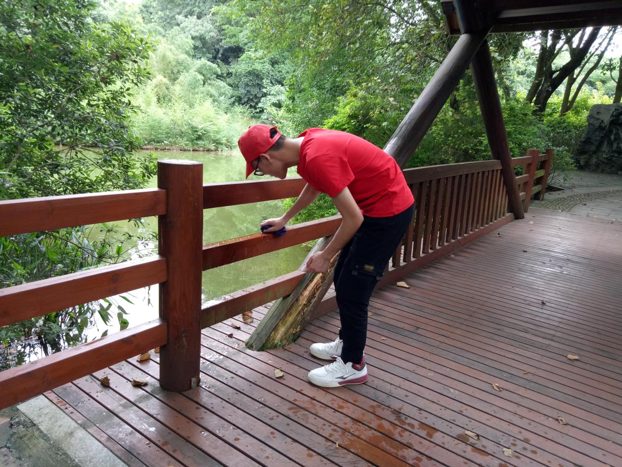 活动前,2017级机电设备维修与管理1班黄柏龙同学细心地给志愿者们讲解注意事项,大家认真倾听,努力记下每一个细节。活动开始,志愿者们拿着垃圾袋和火钳,将道路上和绿化植物里的垃圾装进袋子里。一部分志愿者拿着扫把将落叶打扫干净;一部分志愿者拿着抹布将园内观赏用的石头和木桥的青苔打扫干净。志愿者们用行动向全体市民们倡导健康、文明、环保的生活理念。