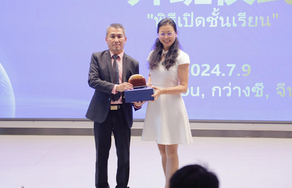 开班仪式上,柳职大鞠红霞副校长、那空沙旺职业技术学院副校长Channatusaha、深南电路股份有限公司人力资源部经理陈诗政代表发言。“我们学校有100多名学生报名参加深南电路订单班,经过学校初选,深南电路面试,最后确定了31名学生加入该订单班,落选的学生都哭了,他们在谷歌上查询柳职大,想越过我们直接到柳职大学习,毕业能到深南电路这样的企业工作。”在经历了一周紧张的行前安排和教育,陪伴学生抵达柳职大后,几近失声的机电专业负责人Vichancharthoem坚持用沙哑的声音代表学生和家长表达了愿望,得知柳职大在泰国还有若干产教融合项目即将启动,他如释重负,露出了期待的目光。