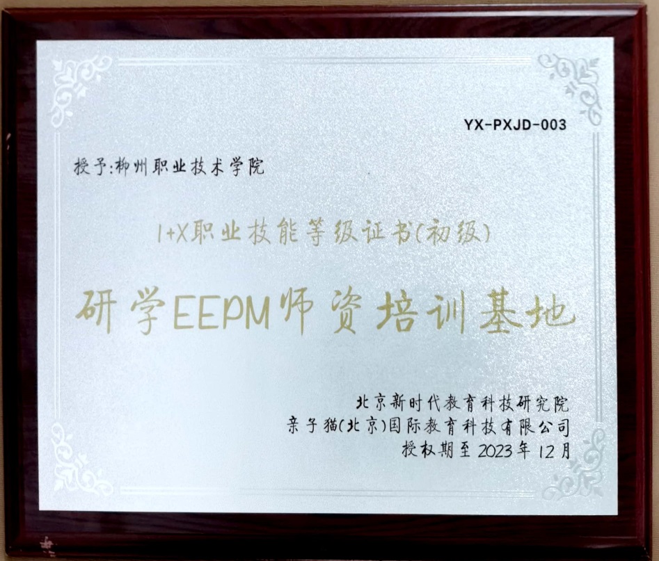 1+X职业技能等级证书(初级)研学EEPM师资培训基地牌匾