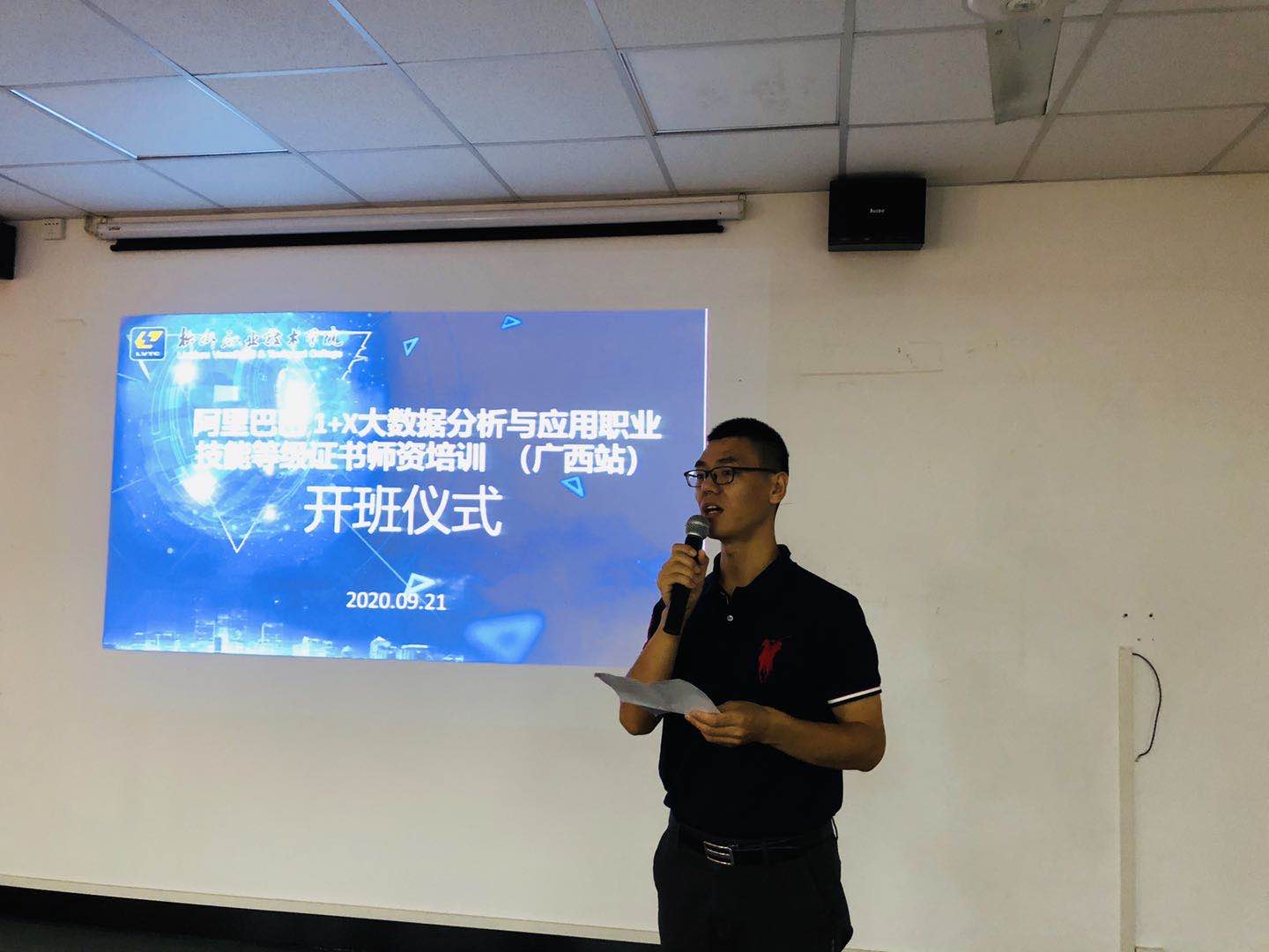 新闻网消息(文/电子信息工程学院 付伟 图 /电子信息工程学院 周虹)2020年9月21日-26日,为期六天的“阿里巴巴 1+X大数据 分析与应用职业技能等级证书师资培训班”(广西站)培训在我校举行。9月21日上午,开班仪式在社湾校区竞择楼前举行。