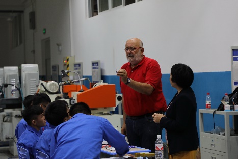 图5 德国培训师Josef在指导学生实训 图6 德国教授 Elmar在授课中
