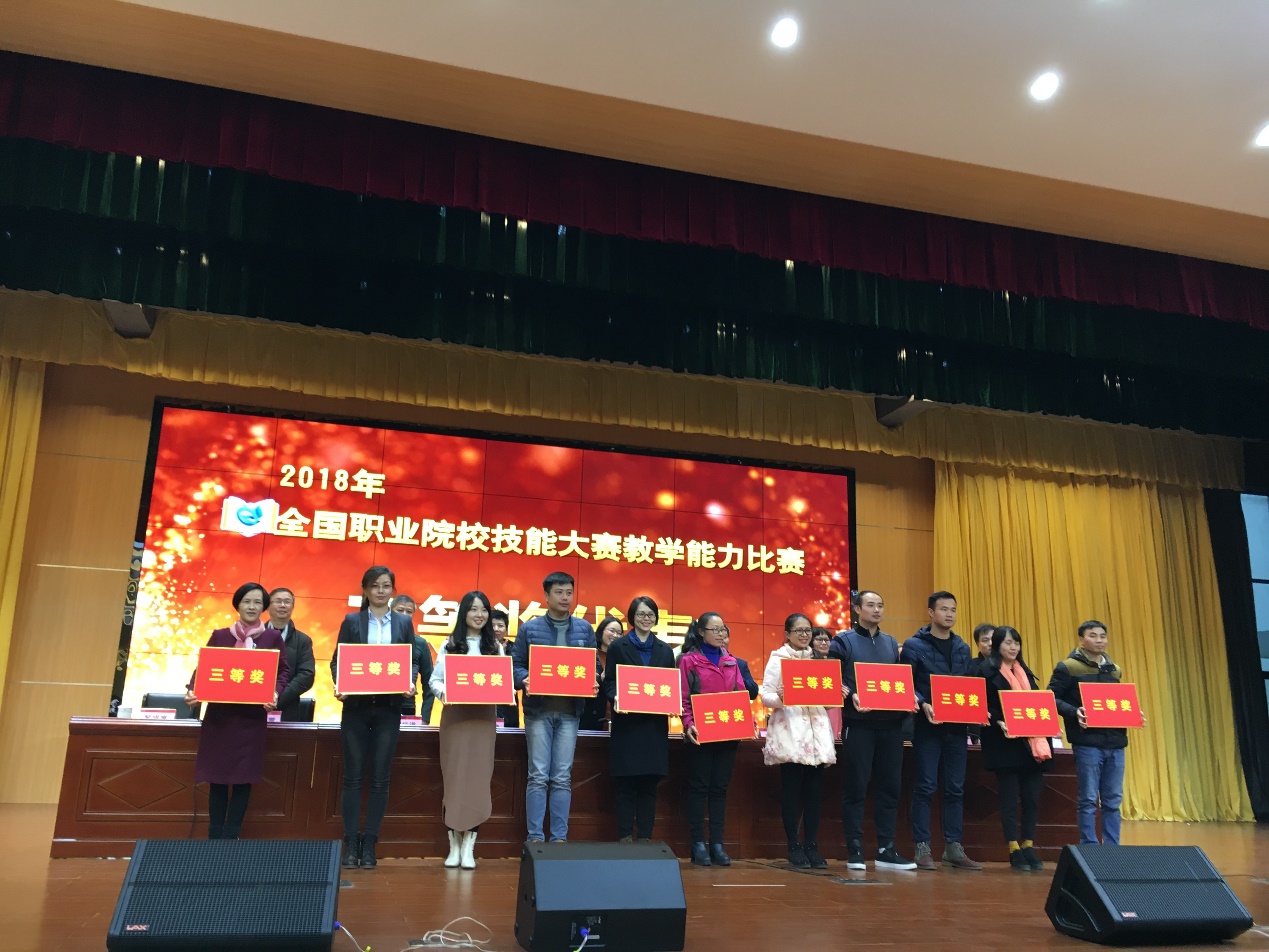本次会议展示了信息化教学大赛优秀作品,并总结交流2018年全国职业院校技能大赛职业院校教学能力比赛经验。会议颁奖阶段,我校国赛三等奖获得者陈秋娜老师、区赛三等奖获得者马云老师作为获奖代表参加颁奖仪式。2018年,我校在全区职业院校信息化教学大赛中获得了优异成绩。我校共选送作品35项,其中一等奖4项,二等奖6项,三等奖14项以及最佳组织奖。这些丰硕的成果体现了我校良好的教师教育技术应用能力和较高的信息化教学水平,展示了我校教师独特新颖的教学方法和信息化教学中取得的新成果。