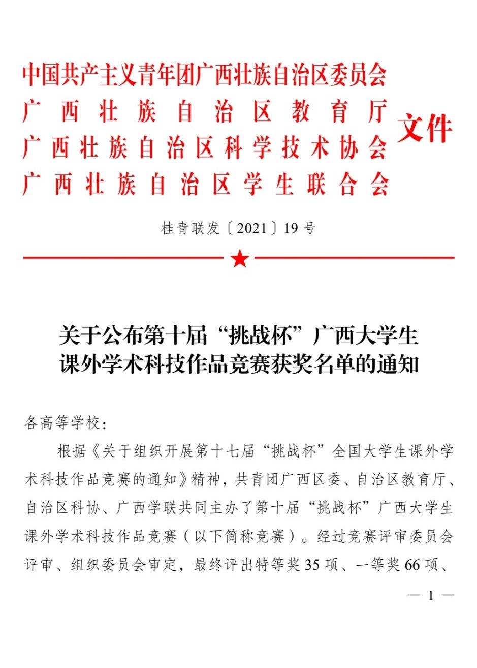 喜讯:我校学子在第十届“挑战杯”广西大学生课外学术科技作品竞赛中勇创佳绩