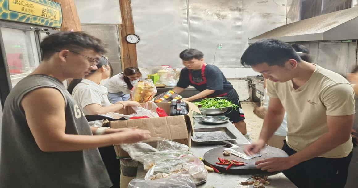团队成员在充分感受布央劳模文化后,充实的一天终于落下帷幕。7月20日晚,带队指导老师许明带领实践团成员进行了劳动教育体验,借助当地农户的厨房,自助长桌宴,共同完成了一顿相对丰盛的晚饭,并邀请了当地村民共进晚餐,感受当地侗族人民的生活习性。