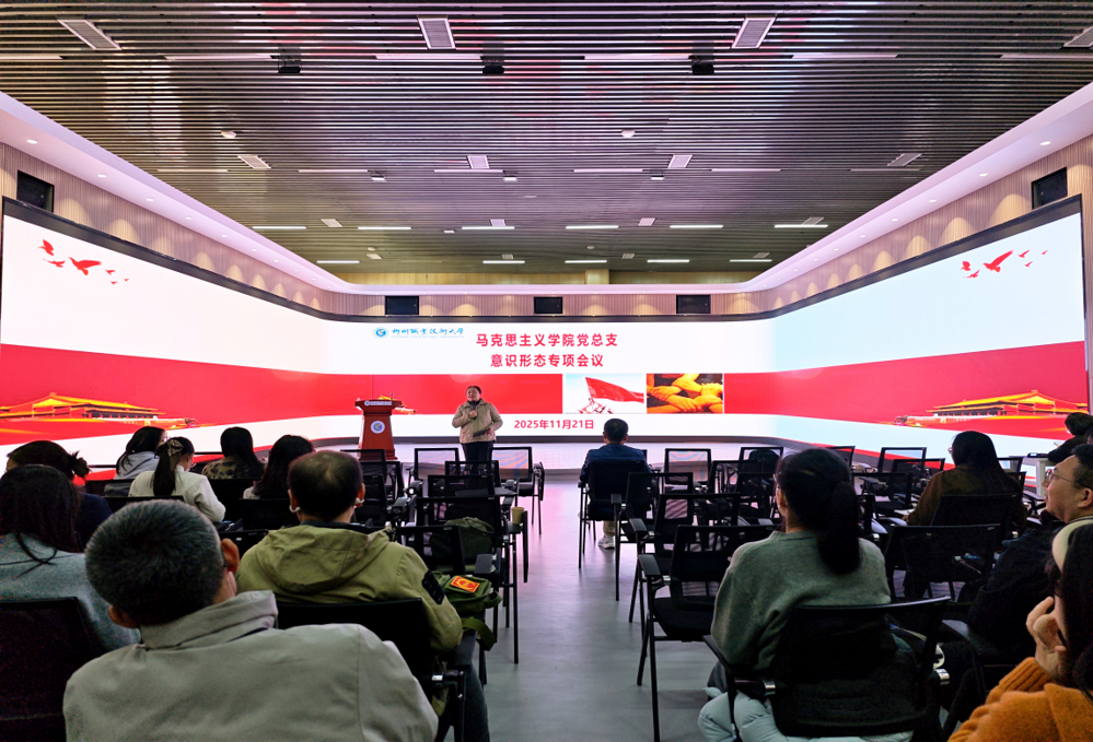 新闻网消息(文/马克思主义学院 陈悦 图/马克思主义学院 潘华华)为深入学习贯彻习近平总书记关于网络强国的重要思想,引导广大党员干部、师生牢固树立“合规用网、安全用网”的自觉意识,共同营造文明健康的网络环境,切实落实意识形态工作责任制,2025年11月21日,马克思主义学院党总支在官塘校区T2教学楼习近平新时代中国特色社会主义思想数智化教学研究中心召开意识形态工作专题会议。该院党总支书记、院长景凌凌主持会议,全体教师党员参加。