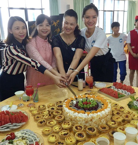 “家长代表们”切下纪念毕业的蛋糕,祝福同学们未来的生活甜甜蜜蜜