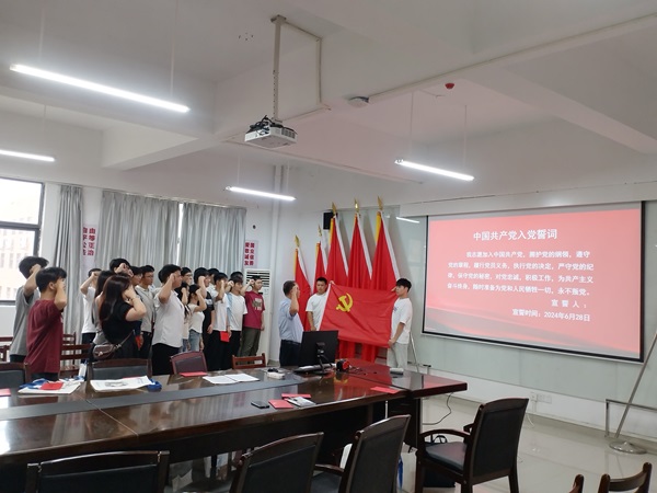 在毕业生党员系列活动后,毕业生党员们在覃宗万书记的引领下,面对党旗,集体重温了入党誓词,以此提醒自己“不忘初心、牢记使命”,持续发挥先锋模范作用。