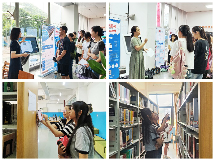 图书馆还精心设计了“好书推荐”展区,利用科普文化长廊电子屏滚动播放“文学艺术修养”专题的馆藏电子图书;利用报刊阅览机提供电子图书、报纸、期刊等多种资源的借阅以及微视频、讲座等现场查阅体验,让到馆新生迅速感受到浓烈的学习阅读氛围,激起他们渴求探索知识的欲望。