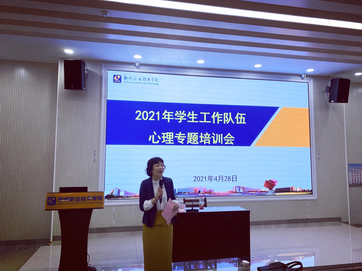 新闻网消息(文/学工处 杨丽丽 图/学工处 莫丽娜)为了加强我校学生工作队伍建设,进一步提升学生工作队伍的业务水平,学生工作处于2021年4月28日邀请了中南大学教授唐海波在官塘校区T4-D401做全天“心理专题”培训。