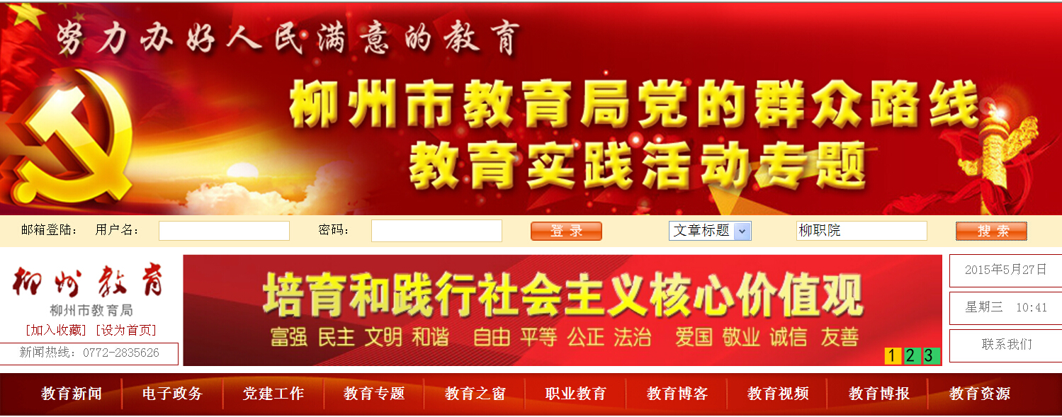 柳州教育局网站发布新华社广西分社调研组到访我院的信息 来源:柳州职业技术学院新闻网 作者:崔智慧 编审: 发布时间:2015-07-08 浏览次数: 次 【字体:小 大】 分享到: 5月29日,柳州教育局网站发布新华社广西分社调研组到访我院的信息。(崔智慧) 关闭 打印正文