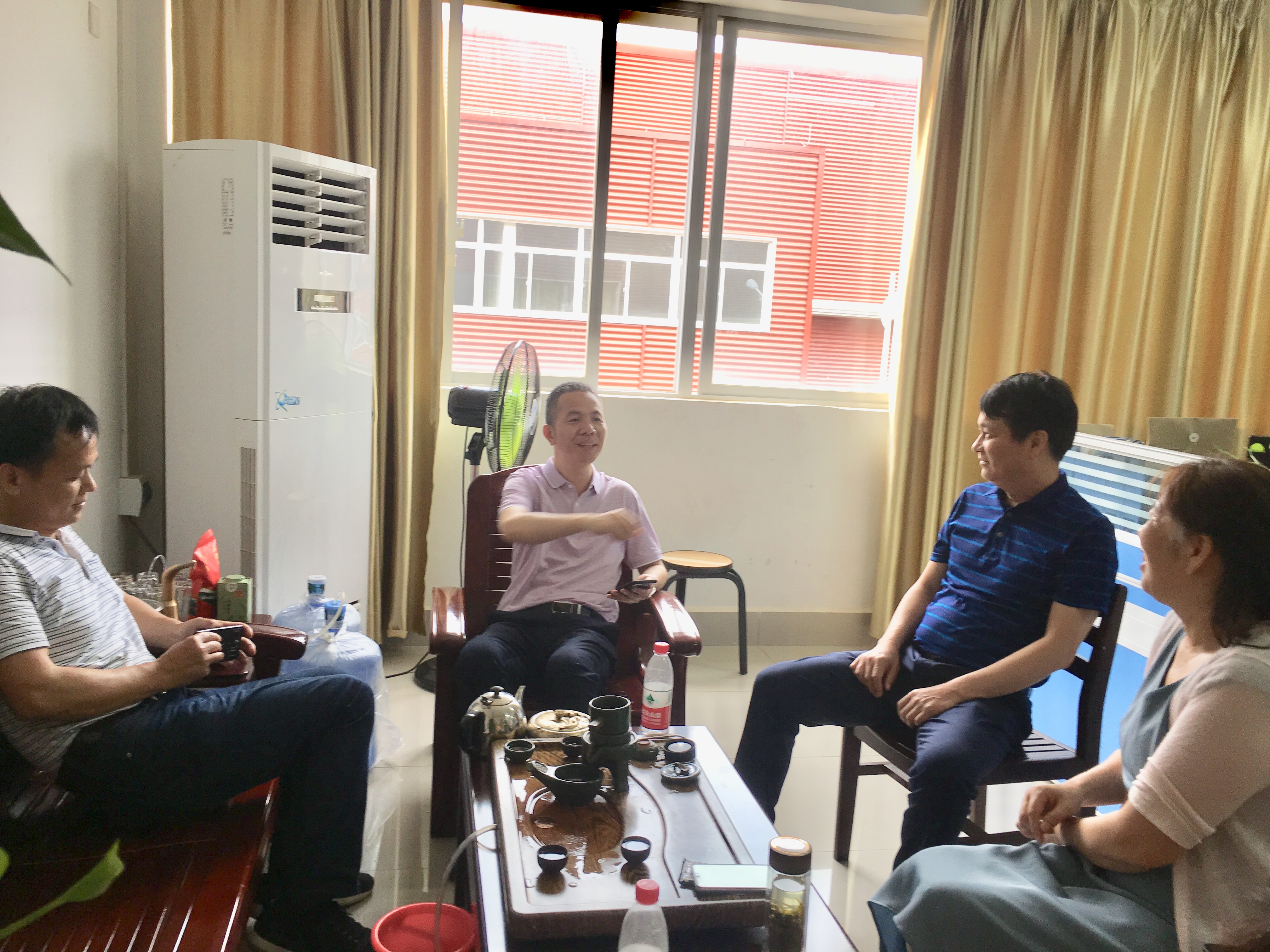 2019年6月10日,韦庆明与他的班主任廖珺、专业老师罗炳钧、张映故等几位老师围坐在学校机械厂办公室谈兴正浓。看到阔别多年的母校,如今发生了翻天覆地的变化,韦庆明由衷地感到欣喜。