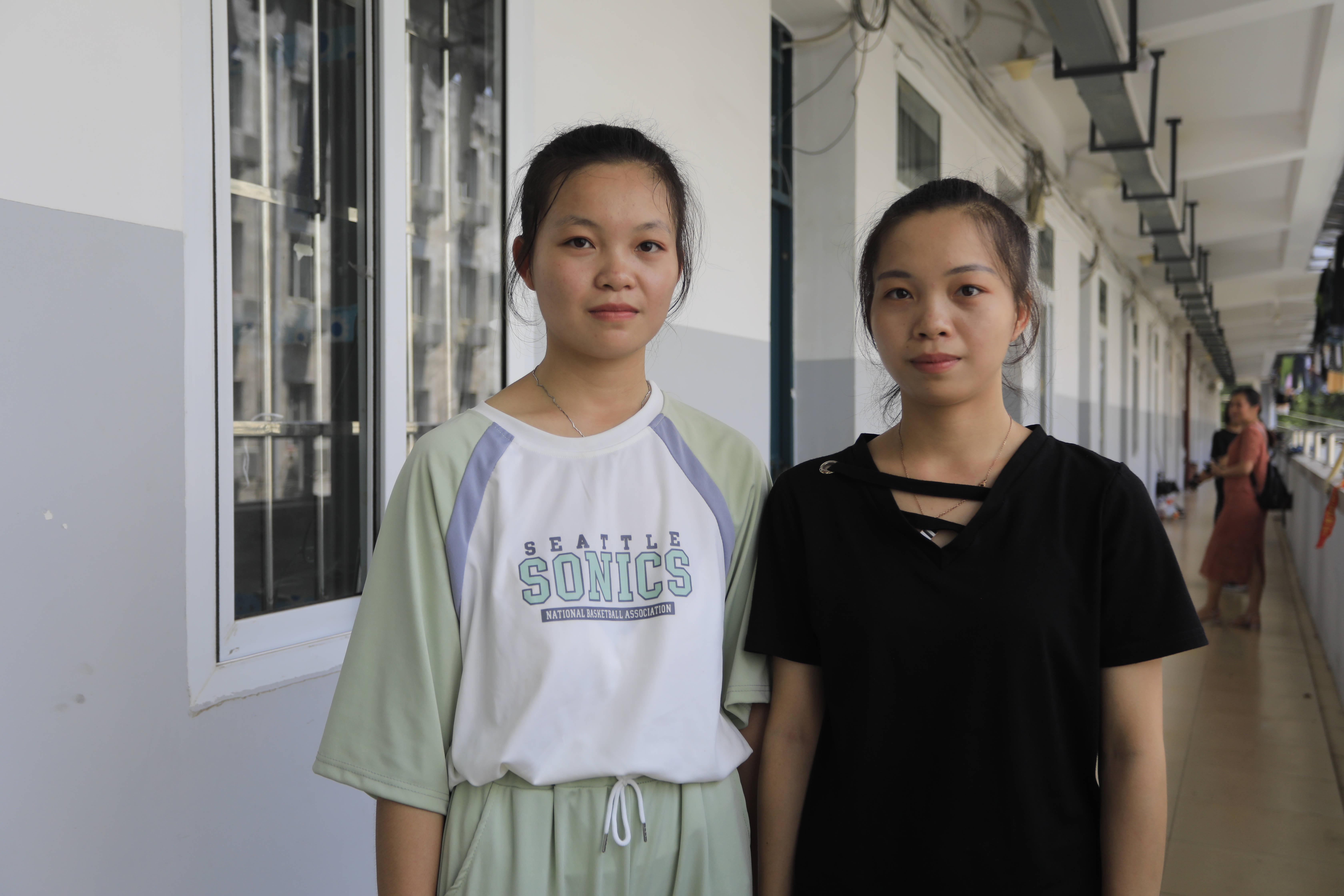 上图中,贸易与旅游管理学院电子商务专业的张伟锦(右,姐姐)和电子信息工程学院大数据专业的张伟琦(左,妹妹)是一对双胞胎姐妹花。两姐妹来自贵港市桥圩镇桥圩高中。之前查询了所有的学校,原来想去南宁读的,后来经过综合考量,从高职院校开展的“大蓬车”活动发放的宣传资料中,发现柳职是所很不错的学校,学长学姐和老师们都挺认可的,而且有她喜欢的大数据专业,这个专业不偏也不冷,从“看专业选学校”的角度,两姐妹果断地选读柳职。现在宿舍里的舍友来自新疆,都挺好相处的。