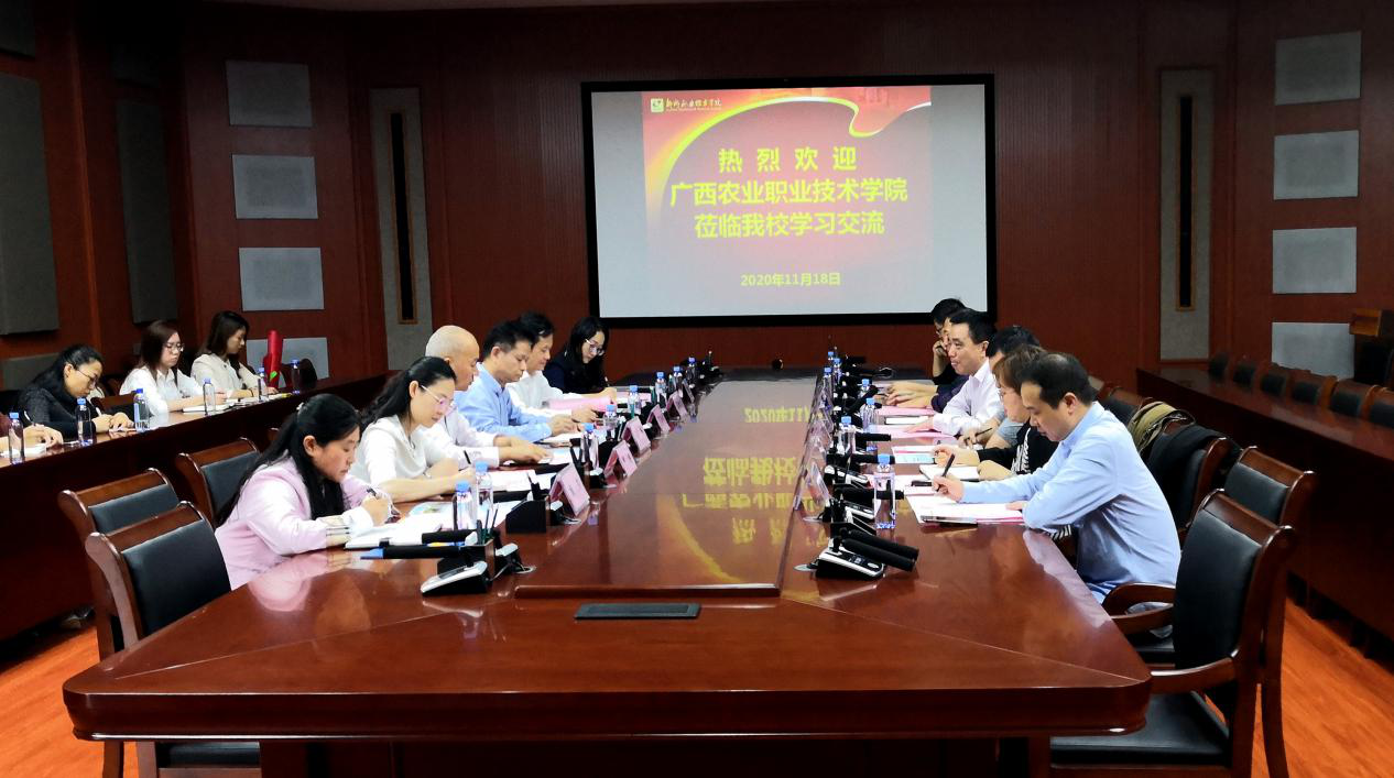 新闻网消息(文/教务与实训管理处 王岳 图/教务与实训管理处 王岳 罗智军)2020年11月18日下午,广西农业职业技术学院副院长罗英极一行17人到我校考察交流。我校副校长王伟率教务与实训管理处、审计处(督导室)、科技开发与校企合作处等部门领导接待了来访客人。
