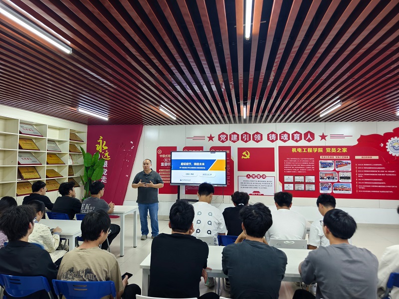 新闻网消息(文/机电工程学院 韦金梅 张颗星 莫梅珍 图/机电工程学院 刘丽园)为激发机电工程学院学生的科研热情与工匠精神,积极备战即将到来的全国性高水平学科竞赛,2025年11月15日,机电工程学院在D8思园党建工作者举行了“磨砺细节,铸就未来——第15届全国大学生金相技能大赛动员会”。本次动员会由李成老师主讲,吸引了近50名本科生参加,现场座无虚席,气氛热烈。