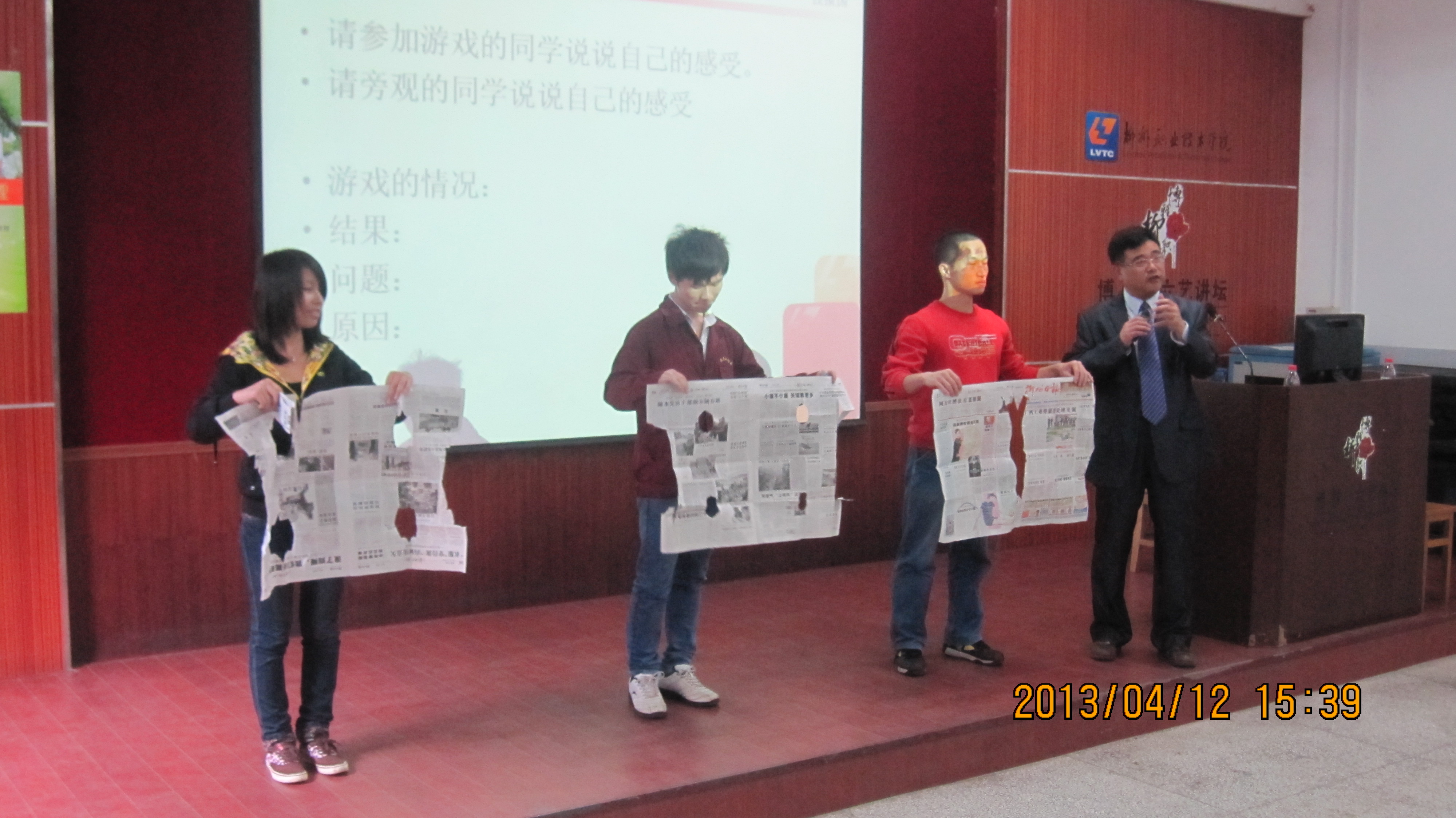 在一个半小时的讲座中,姜献生教授积极地与听众互动,通过问答、角色扮演以及小游戏等活动充分调动听众的积极性,把管理学内容中复杂的沟通技巧简单化。讲座化繁为简、寓教于乐,使同学们在轻松愉快的氛围中学到了人际沟通与管理的方法和技巧,有助于同学们通过有效沟通铺就职场生涯成功之路。(文/图 王金生)