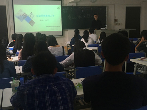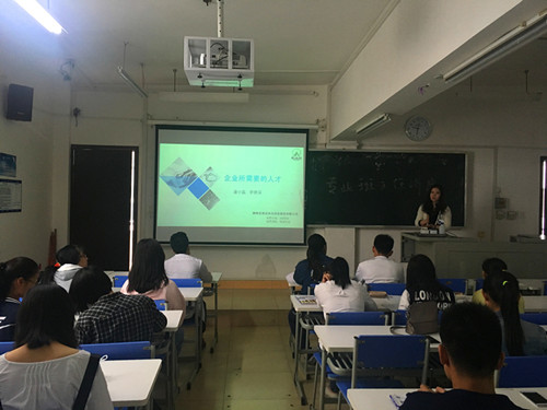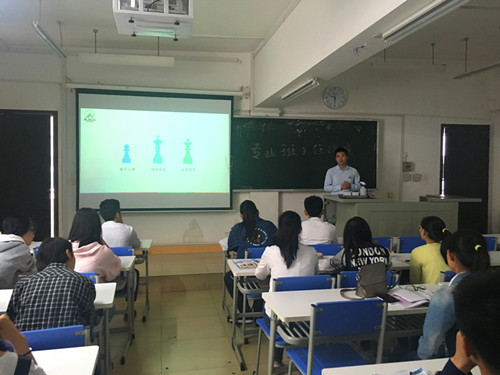 讲座分为两部分,第一部分由该班专业班主任王恬老师从专业角度介绍了企业对于营销人员素质的要求,及营销人员在企业发展应该具备的能力素质;王老师分享自身学习和工作的经历,也分析了2015级市场营销3班同学在学习中存在的一些问题,她希望通过此次讲座激励同学们学习的热情,搞好班级的学风和班风建设。