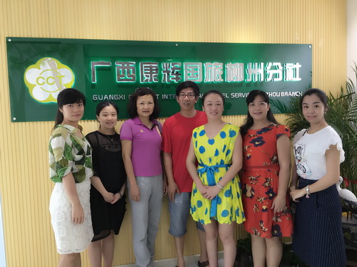 调研团队成员与柳州市龙城康辉国际旅行社总经理王璇(右三)合影