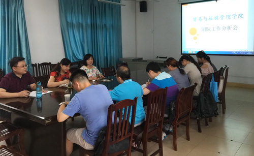 新闻网消息(贸易与旅游管理学院/朱汝群)6月30日下午,贸易与旅游管理学院在达理楼会议室召开团队负责人工作分析会。院长黎渝林,党总支副书记陈月明,副院长谭欣、潘峰出席会议。全体团队负责人采取头脑风暴法对负责人涉及的工作领域进行了分析讨论。