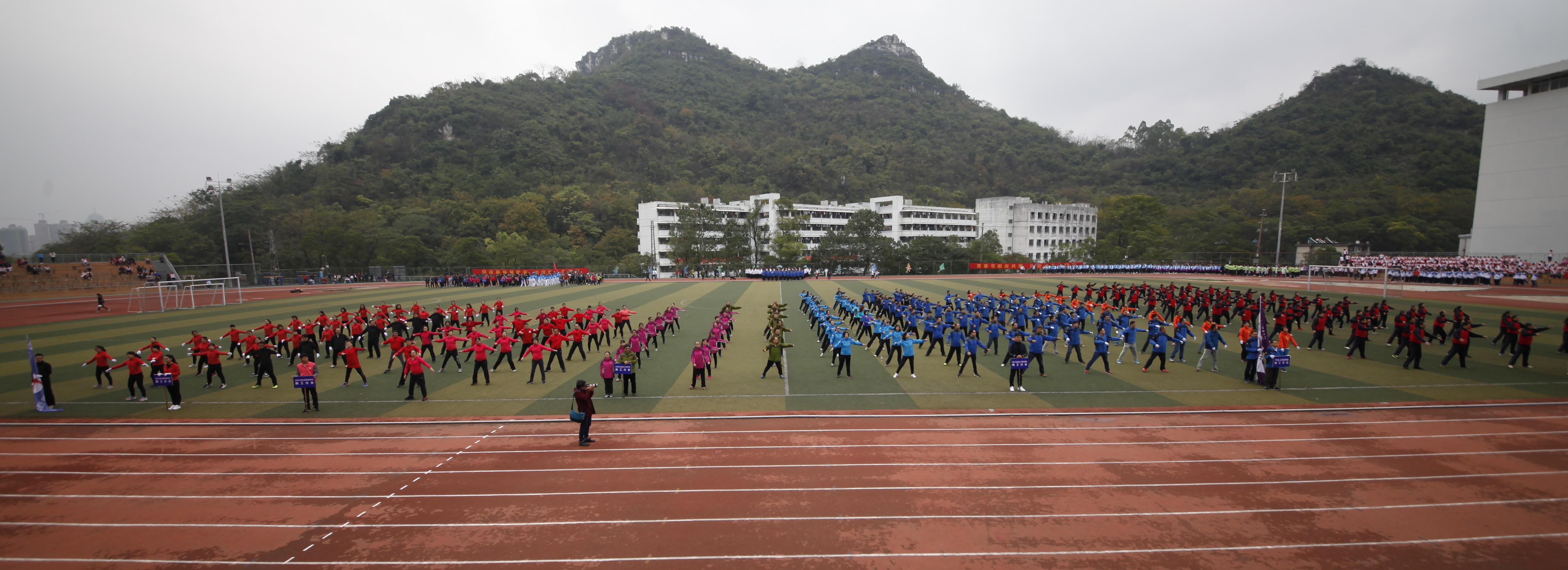 校长石令明致运动会开幕词。石校长指出,2017年,全体师生员工紧紧围绕 “国际引领、内涵升级、六化并举,建成特色鲜明高职名校”的发展战略, 努力在“管理示范、改革示范、发展示范”上下功夫,着力抓住重难点,找准切入点,抢抓制高点,以实际行动践行了党的十九大对职业教育提出的“完善职业教育和培训体系,深化产教融合、校企合作”的精神。学校的国际化办学实现了以点带面,全面引进了国际先进职业教育标准,主动与国际知名企业建立全面国内外战略合作,帮助企业完成国际化战略的人才储备,助力中国企业走出去,服务“一带一路”建设;学校的内涵升级形成了特色品牌,先后建成了一大批国家级、自治区级品牌专业、课程和实训基地,专利申请量与获授权量雄踞广西高职院校首位,是广西拥有国家级、自治区级教学团队和教学名师人数最多的高职院校。这些成绩的取得,是“求真务实,追求卓越”价值观的生动体现,促进了学校社会影响力及美誉度与日俱增,为促进学校“成为受人尊重的高职名校”的愿景奠定了坚实基础,使得“让学生成为企业的首选”的使命变成了现实。石校长希望全体师生员工要继续发扬开拓创新、勇于争先的精神,在运动会上展现出柳职人团结、协作、奉献的精神风貌。