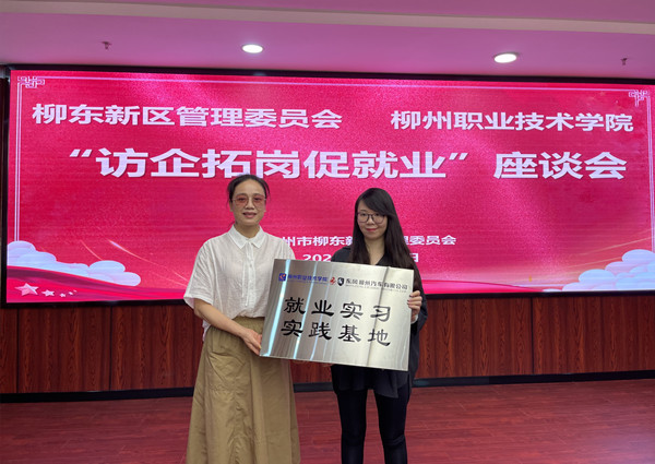 参会企业代表分别介绍了企业的基本情况及用工需求,并就毕业生招聘等事宜与校方进行了深入探讨交流,各企业代表纷纷表示当前有较多用工需求,非常希望能与学校展开进一步的合作。参会企业中,东风柳州汽车有限公司与我校已合作多年,在教师挂职、学生实习、基地建设、产线改造、项目开发等多方面开展了深度的合作,为进一步固化双方合作关系,在柳东新区人社局和各企业代表的见证下,学校在座谈会现场为东风柳州汽车有限公司授予“就业实习实践基地”牌匾,寓意双方合作向前迈进一大步。