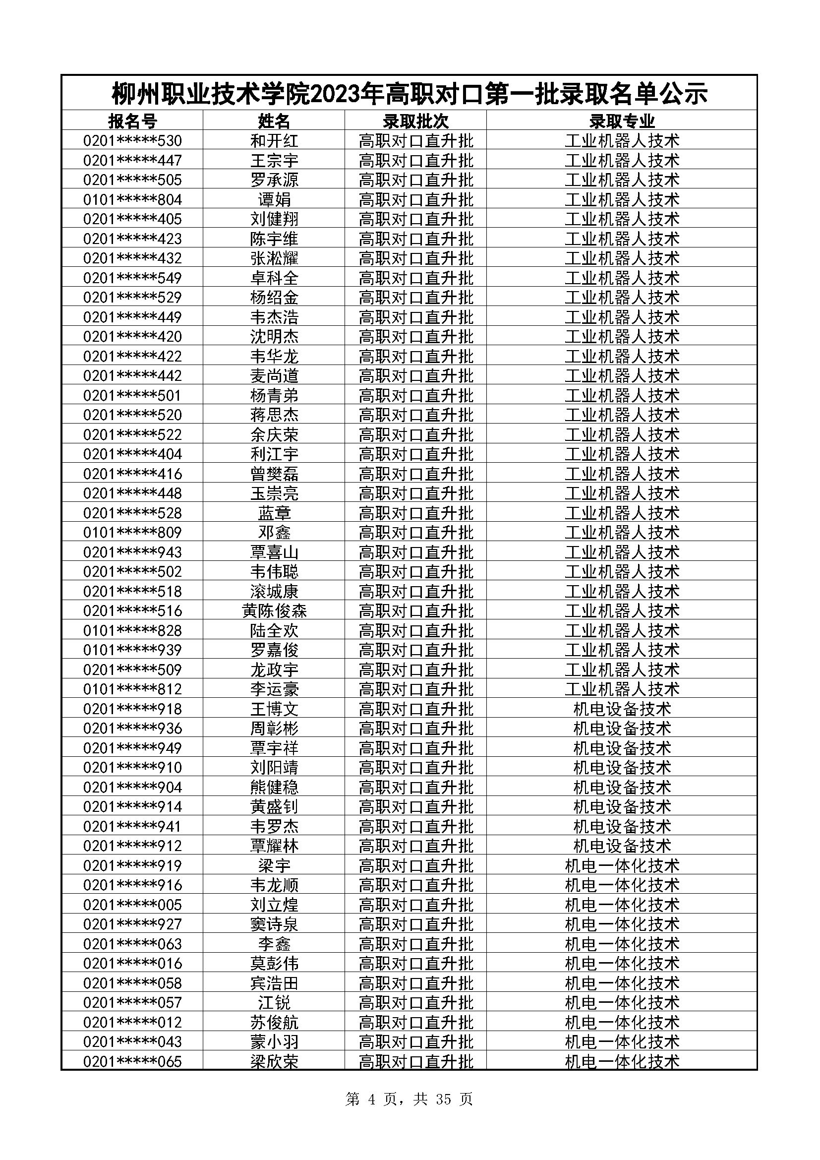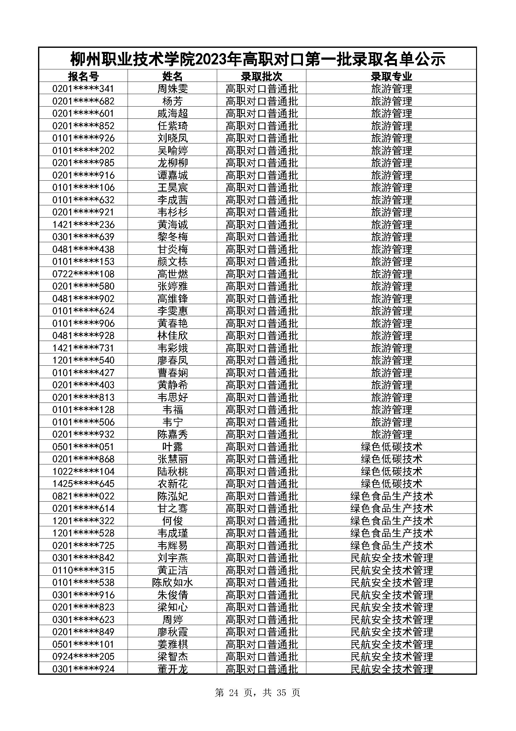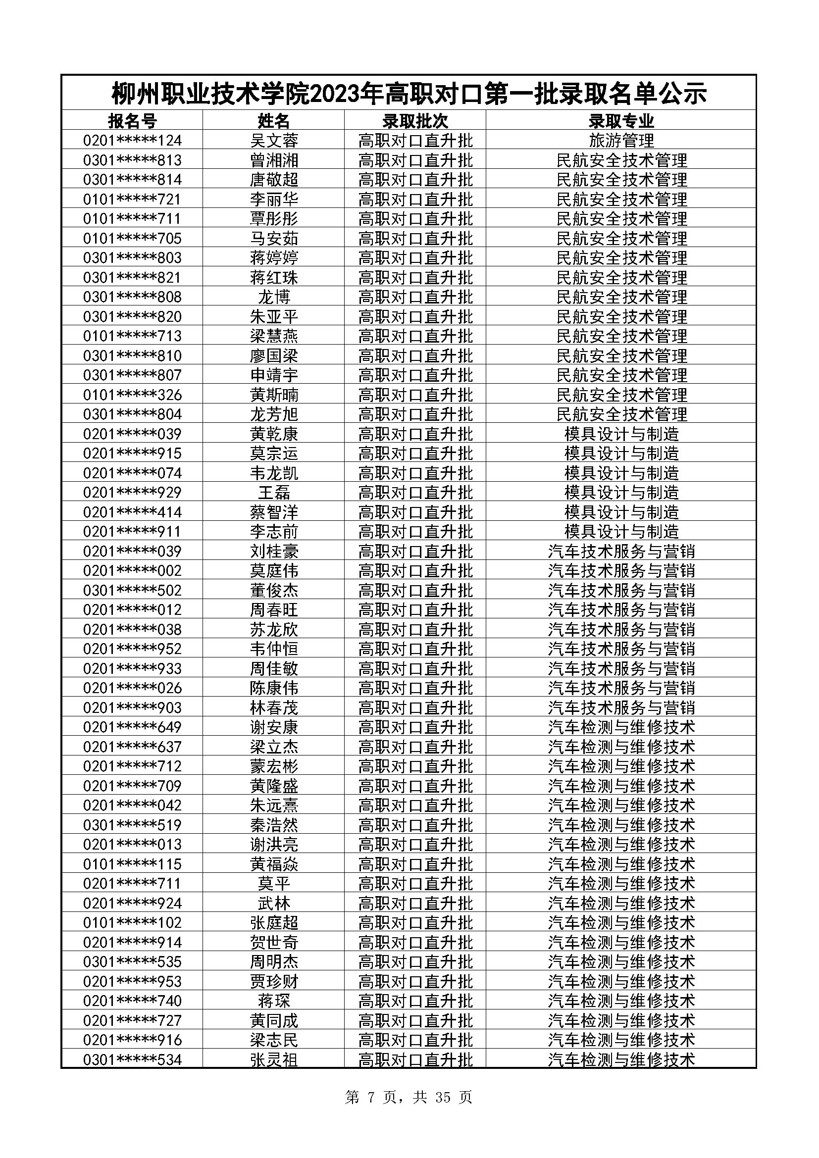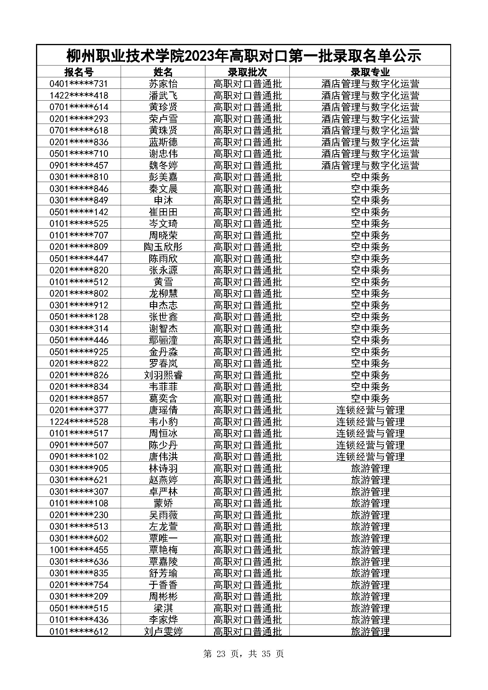 柳州职业技术学院2023年高职对口录取名单公示(第一阶段)
