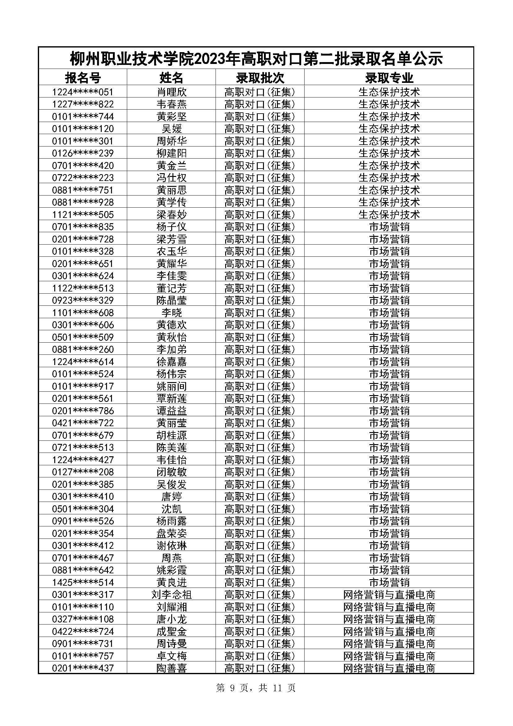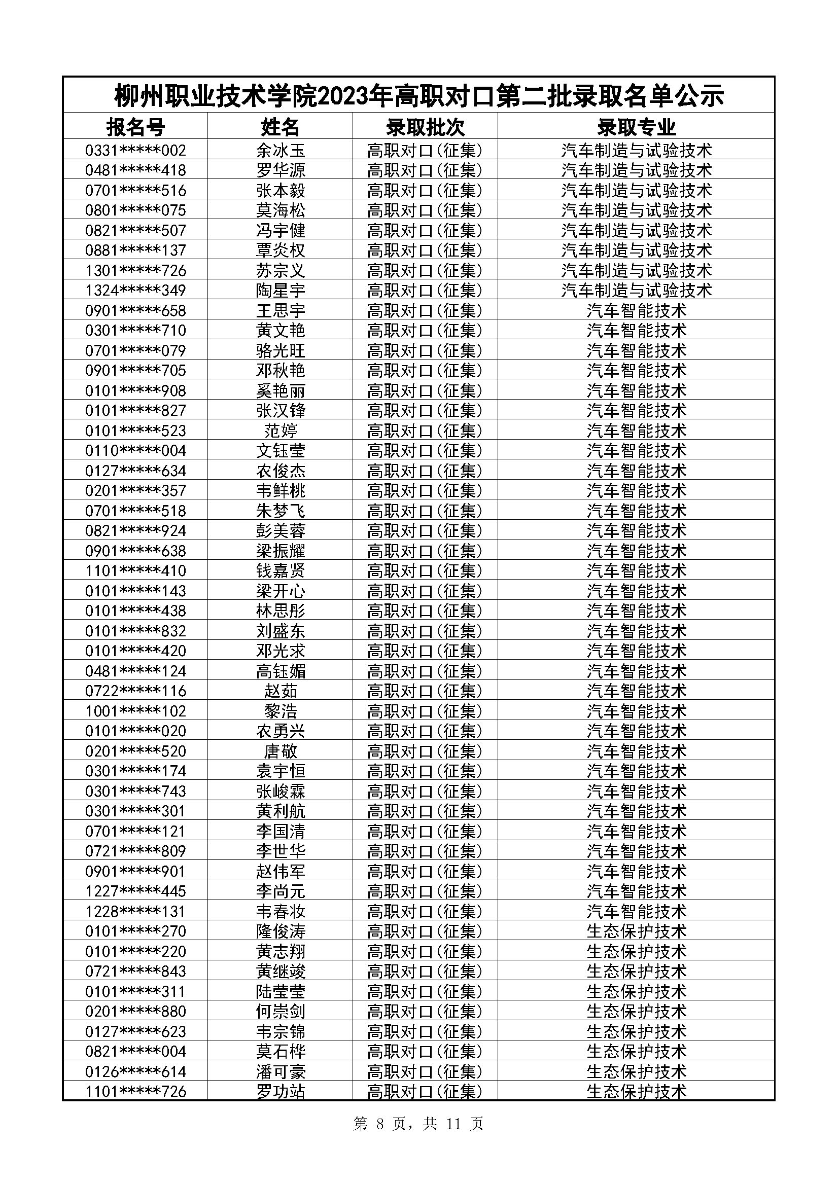 柳州职业技术学院2023年高职对口录取名单公示(第二阶段)