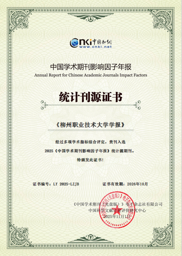 近年来,《柳州职业技术大学学报》锚定高质量发展目标,对标高水平办刊标准,立足学校,关注地方经济发展,把准职业教育、区域产业发展脉搏,不断打磨精品栏目,聚力打造了职业本科、工业文化、产教融合、“五金”建设等特色栏目,影响力持续攀升。近日,由《中国学术期刊(光盘版)》电子杂志社有限公司、中国科学文献计量评价研究中心研制出版的《中国学术期刊影响因子年报(人文社会科学版)·2025 版》正式发布,经过多项学术指标综合评定,本刊入选该年报统计源期刊。与此同时,本刊的复合影响因子、影响力指数(CI)、CI学科排序大幅提升,在648种综合性人文、社会科学学科期刊影响力统计分析数据库中,本刊所在分区由Q4区跃升至Q3区,办刊水平再上新台阶。