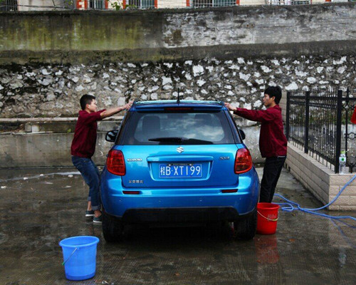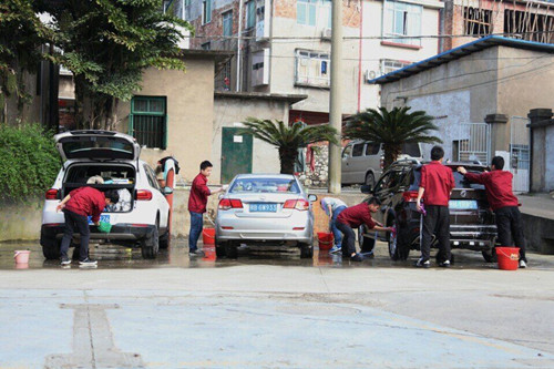 学生在清洗车辆