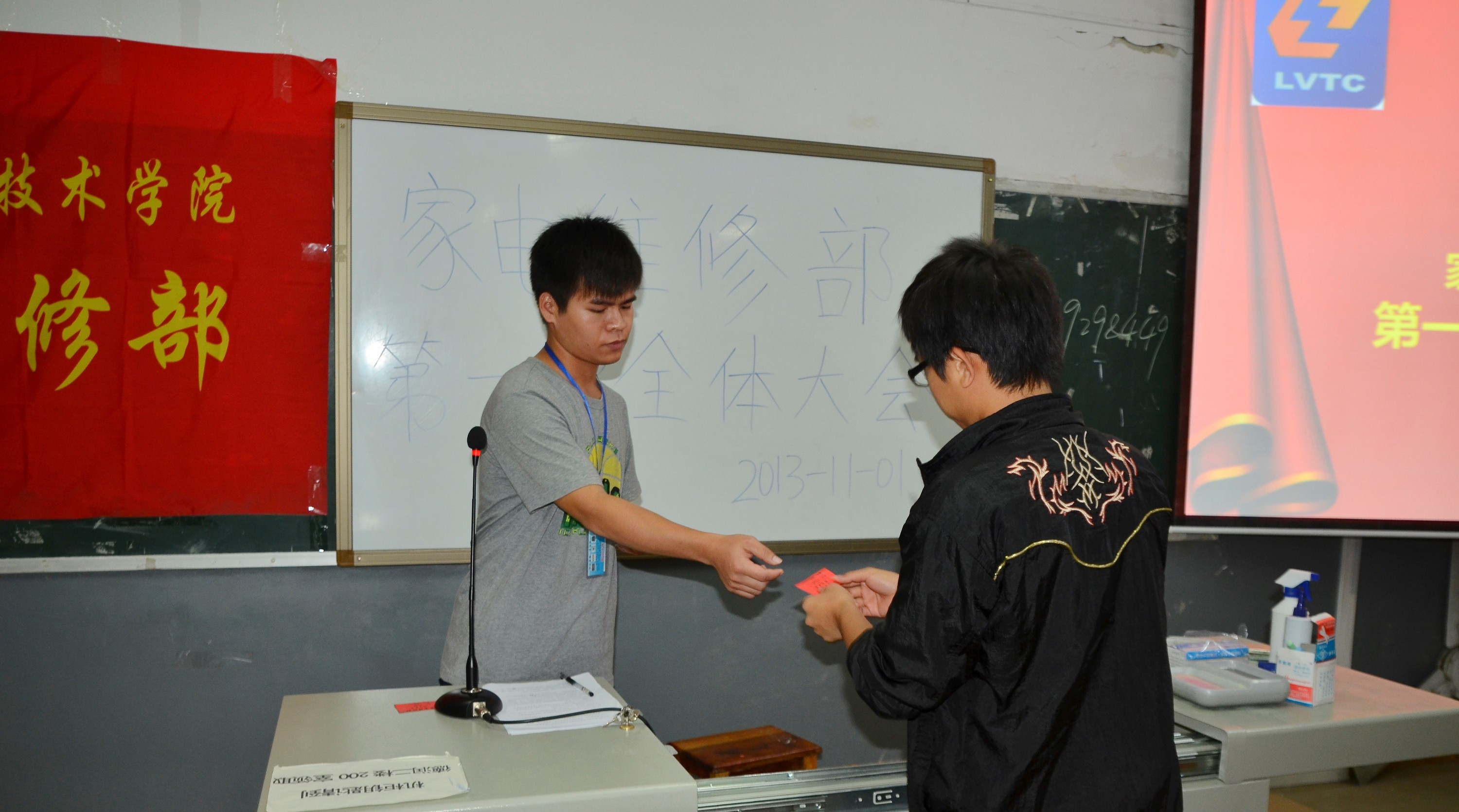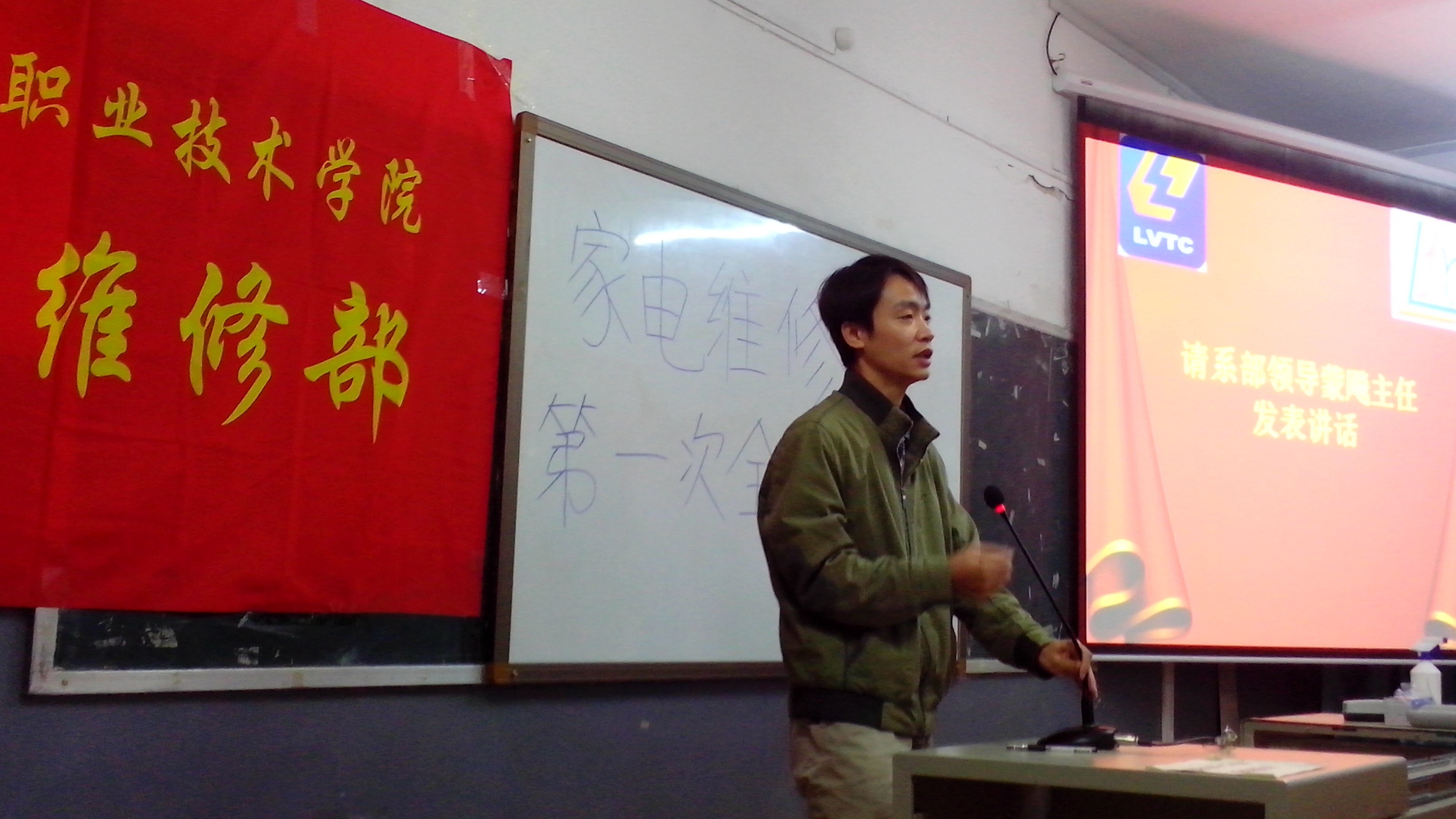 2013年11月1日晚上19:30,电子信息工程系家电维修部在德润楼104教室隆重举行了第一次全体大会,该系副主任蒙飚老师、杨世海老师应邀出席了本次大会。本次会议由家电维修部部长王宗广主持。大会的召开让13级的新成员对家电维修部有更深一步的了解。