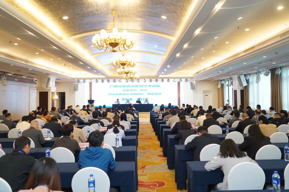新闻网消息(文、图/招生就业处 覃晓晨 )2025年10月22日,2025年广西高职高专分类考试招生联合测试总结会在南宁顺利召开。自治区教育厅党组成员、广西招生考试院党委书记、院长、国家督学刘冰,广西招生考试院副院长马翀,我校副校长鞠红霞,广西体育高等专科学校党委副书记、校长彭峰林,广西招生考试院相关部门负责人、广西54所参与分类考试招生联合测试院校的领导及相关职能部门工作人员,共计150余人参加本次总结会议。总结会由我校招生就业处处长郭莉主持。