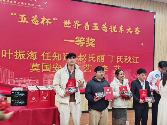 新闻网消息(文/国际教育学院 黄健霞 图/汽车工程学院 龙佳庆)2025年12月28日,由广西高等教育学会外国留学生教育管理专业委员会和柳州铁道职业技术学院,联合举办的广西高校国际学生第二届新能源大赛圆满落下帷幕。经过激烈角逐,由我校汽车工程学院龙佳庆老师指导的财经与物流管理学院印度尼西亚籍留学生ZUCHRIYAN ALFIN SUKMANA(中文名:志龙)和国际教育学院的阿富汗籍留学生MOHAMMADI FAYAZ(中文名:莫国安),分别斩获“东风柳汽杯”世界看柳汽说车大赛特等奖和“五菱杯”世界看五菱说车大赛一等奖。