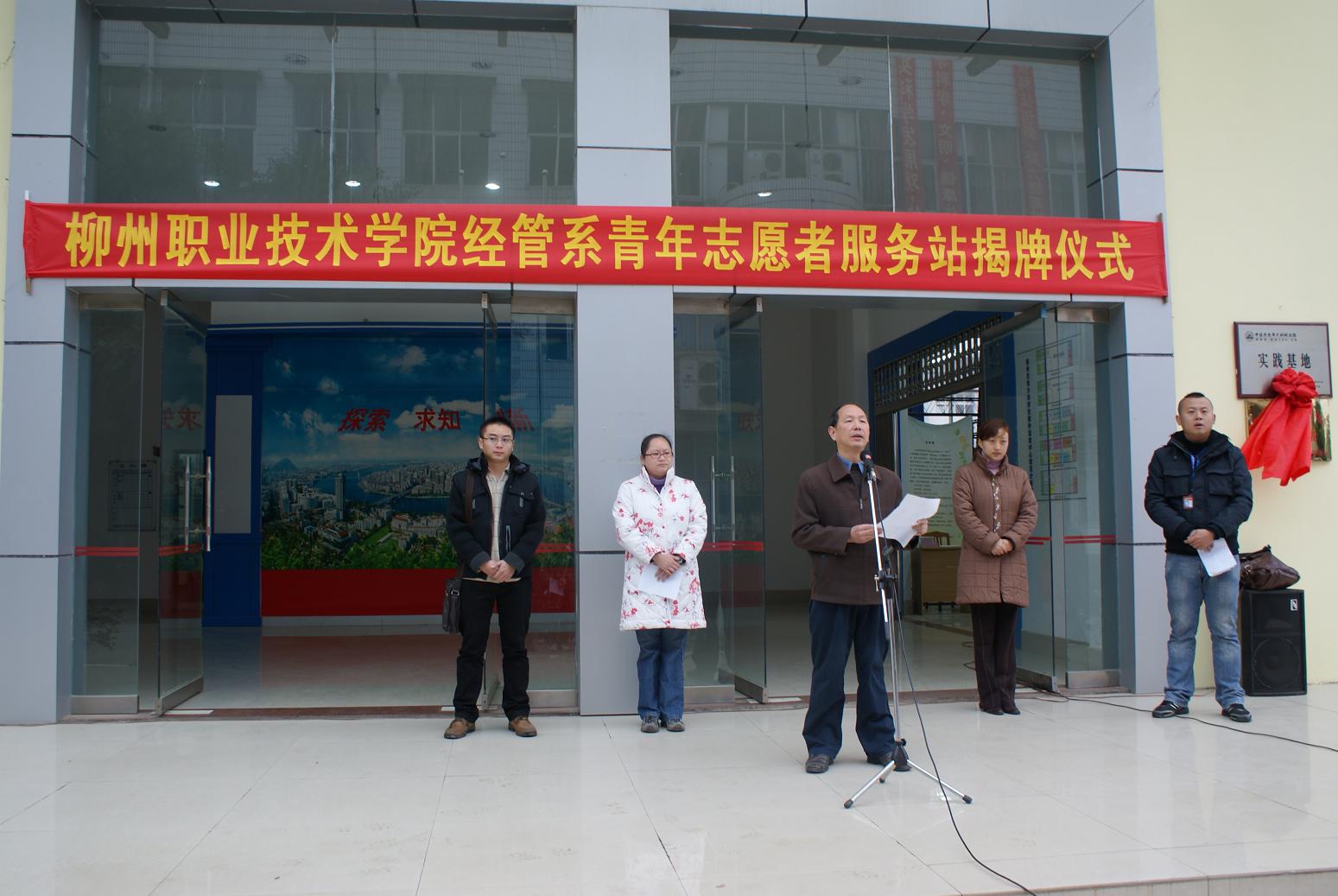 2009年12月8日,经济管理系青年志愿者校外服务站揭牌仪式在市科技馆举行。柳州市科技馆张馆长、我院团委书记杨琳、经济管理系教师王静、杨小浒、陈月明以及50名经济管理系青年志愿者参加仪式。