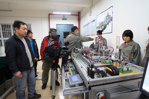 大型电视专题片《百所名高职》是教育部推出的一部集中反映国家示范性高等职业院校发展历程、特点和所取得成就的系列专题片。摄制工作的进行,将进一步宣传我院在办学理念、教育教学改革等方面所取得的成果,向全社会展示我院作为全国示范高职院校的风采。待专题片摄制、编辑完成后,将择期在中国教育电视台进行首播。(文/朱汝群 图/朱敬民)