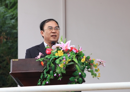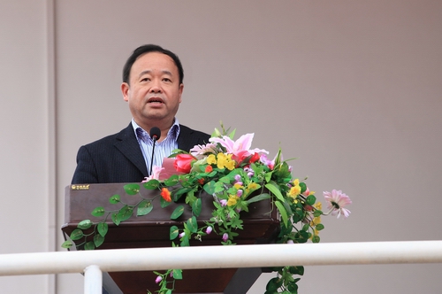 庄严的升国旗仪式后,石令明院长致运动会开幕词。他首先对本次运动会的隆重开幕表示热烈的祝贺,向为运动会紧张筹备的同志们表示感谢,向参赛的所有运动员和即将投入紧张工作的人员表示亲切的问候!他说,运动会的开展,是学院推行大学生素质教育、发展体育运动、提高学生身体素质等方面的重要举措,是对全院师生员工精神风貌的一次大检阅,是磨炼学生意志,增强拼搏精神的一次大型活动。他希望全体运动员听从指挥、服从裁判,坚韧顽强、拼搏进取,赛出风格、赛出水平;希望裁判员认真履行裁判职责,严肃、认真、公平、准确,确保比赛工作顺利进行。石令明院长最后祝本届运动会取得圆满成功!