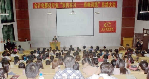 2011年11月16日下午,经济管理系在博闻楼110阶梯教室举行了“顶岗实习—真账训练”总结大会。至此,由我院与中国恒企教育集团柳州恒企财务咨询有限公司合作开展的2009级会计电算化专业“顶岗实习—真账训练”“真刀真枪”式的实训项目画上了一个圆满的句号。